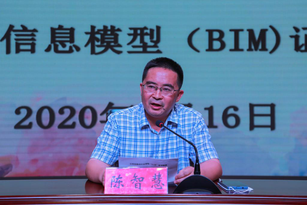颁证会上,学校教务科副科长田军老师对2019年“1+X”建筑信息模型(BIM)职业技能等级证书工作做了简要的汇报。随后,观看了2019年11月7日全国首批BIM证书颁发中央电视台新闻视频,续老师宣读了我校选派53名同学参加全国首批1+X建筑信息模型(BIM)职业技能等级证书考试,在老师和同学们的共同努力下,考试通过了赵映旭、邱学礼等35人,通过率超全国平均值近21个百分点,学校副校长陈智慧老师为荣获全国首批1+X建筑信息模型(BIM)证书的第一位赵映旭、第二位邱学礼、第三位郑帅同学颁发证书。