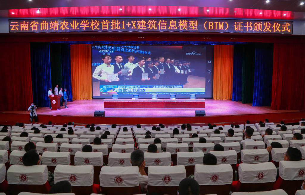 云南省曲靖农业学校是教育部首批1+X证书制度试点学校,也是1+X建筑信息模型(BIM)职业技能等级证书考核站点。通过1+X证书制度的试点,对深化教师、教材、教法“三教”改革,促进校企合作,探索建设职业教育国家“学分银行”,构建国家资历框架都具有深远意义。