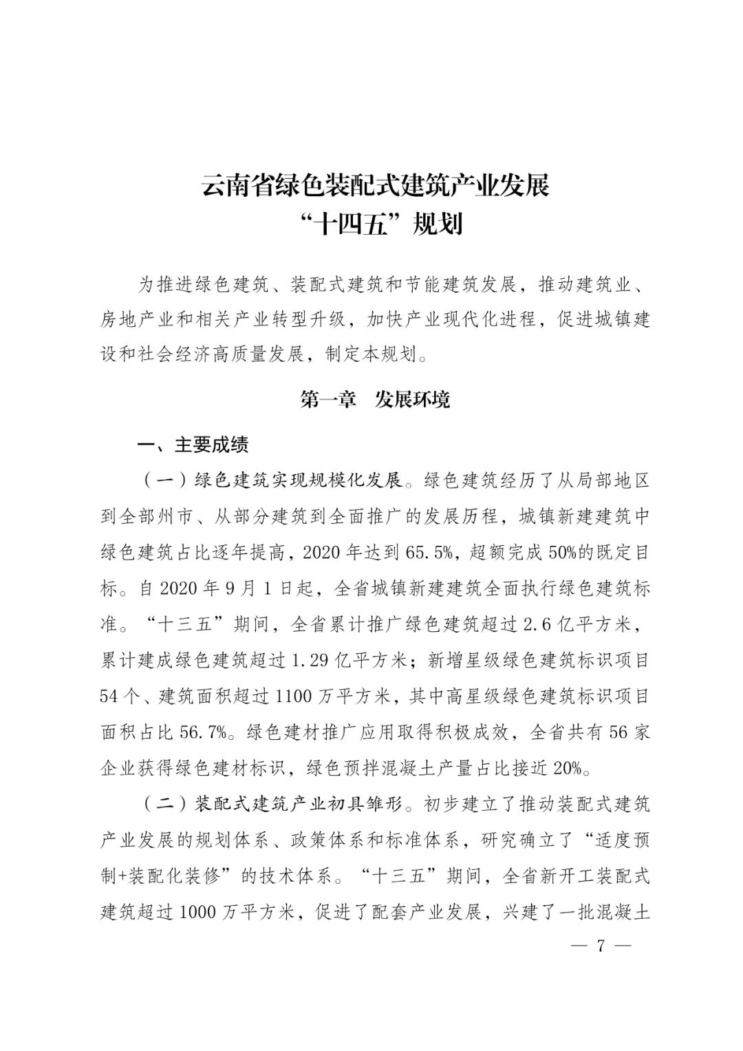 6部门关于印发《云南省绿色装配式建筑产业发展“十四五”规划》的通知