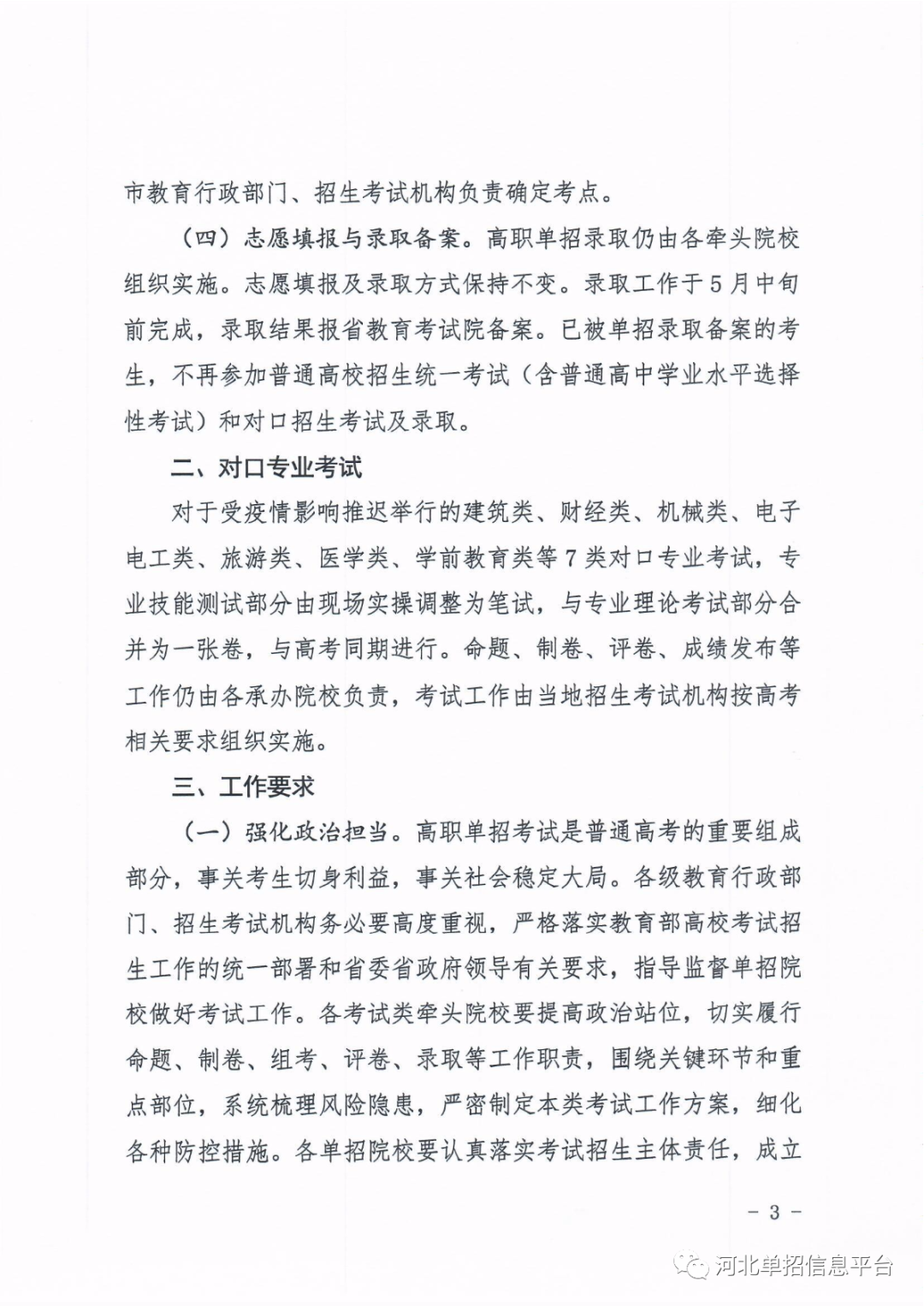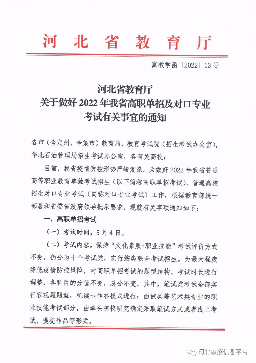 河北省教育厅关于做好2022年河北省高职单招及对口专业考试有关事宜的通知