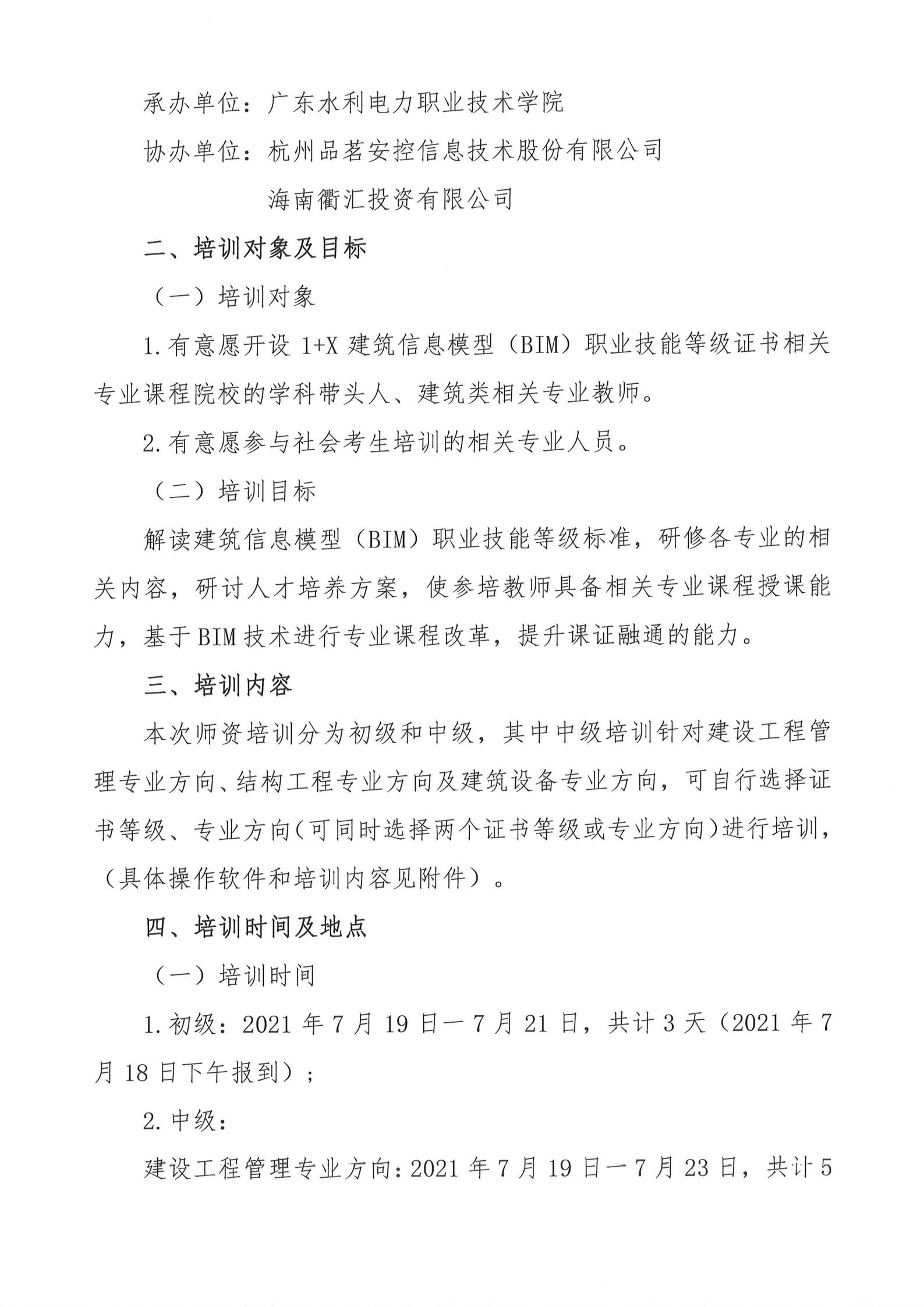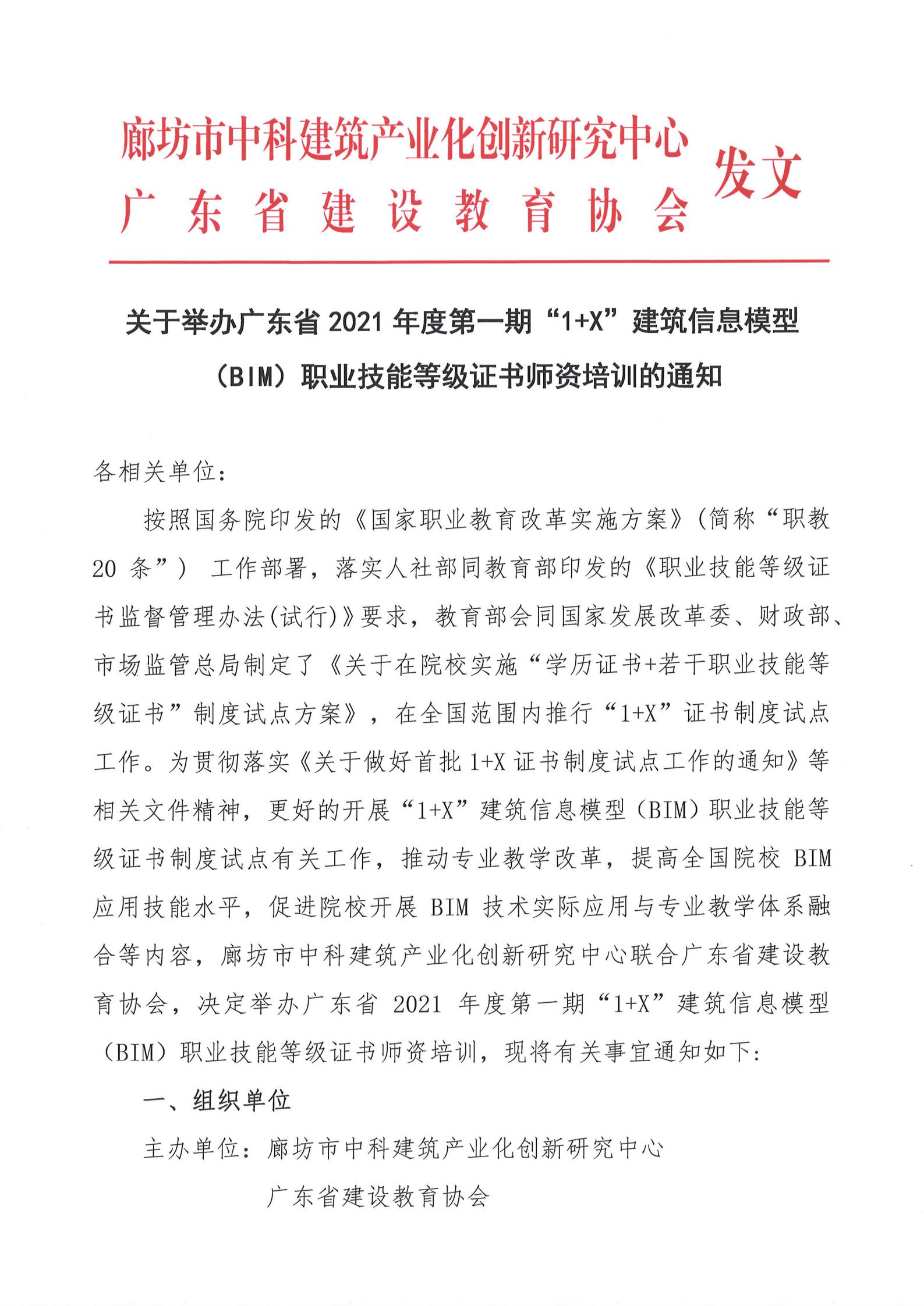 2021年关于举办广东省2021年度第一期“1+X”建筑信息模型(BIM)职业技能等级证书师资培训的通知.rar