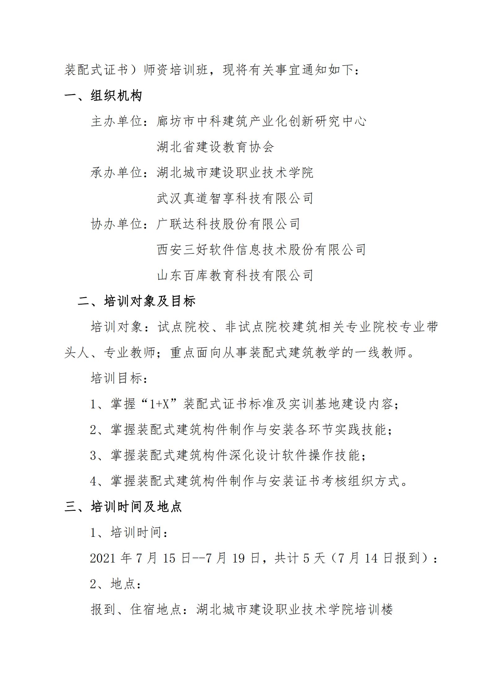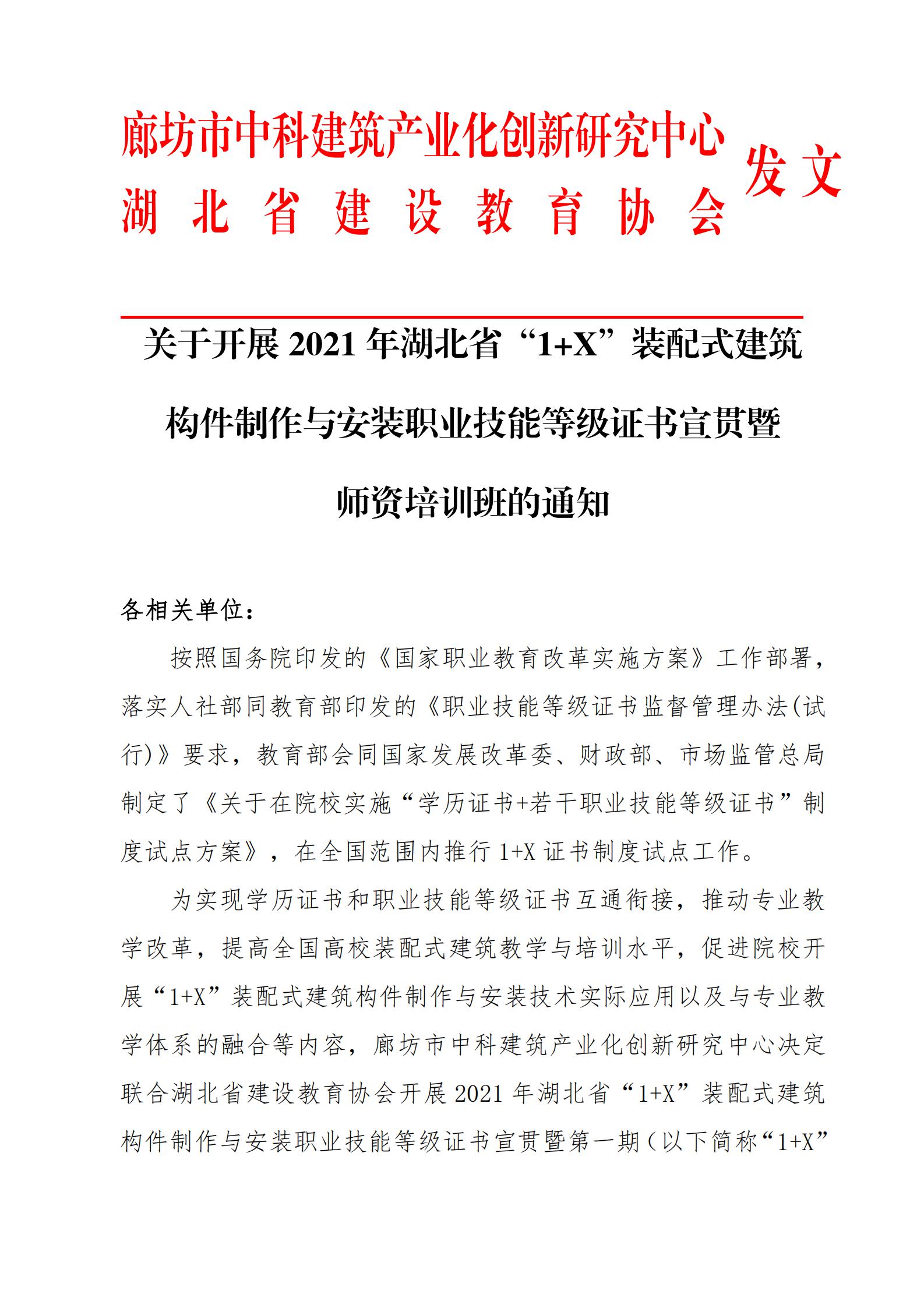 2021年湖北省1+X装配式建筑 构件制作与安装职业技能等级证书宣贯暨师资培训班通知.pdf