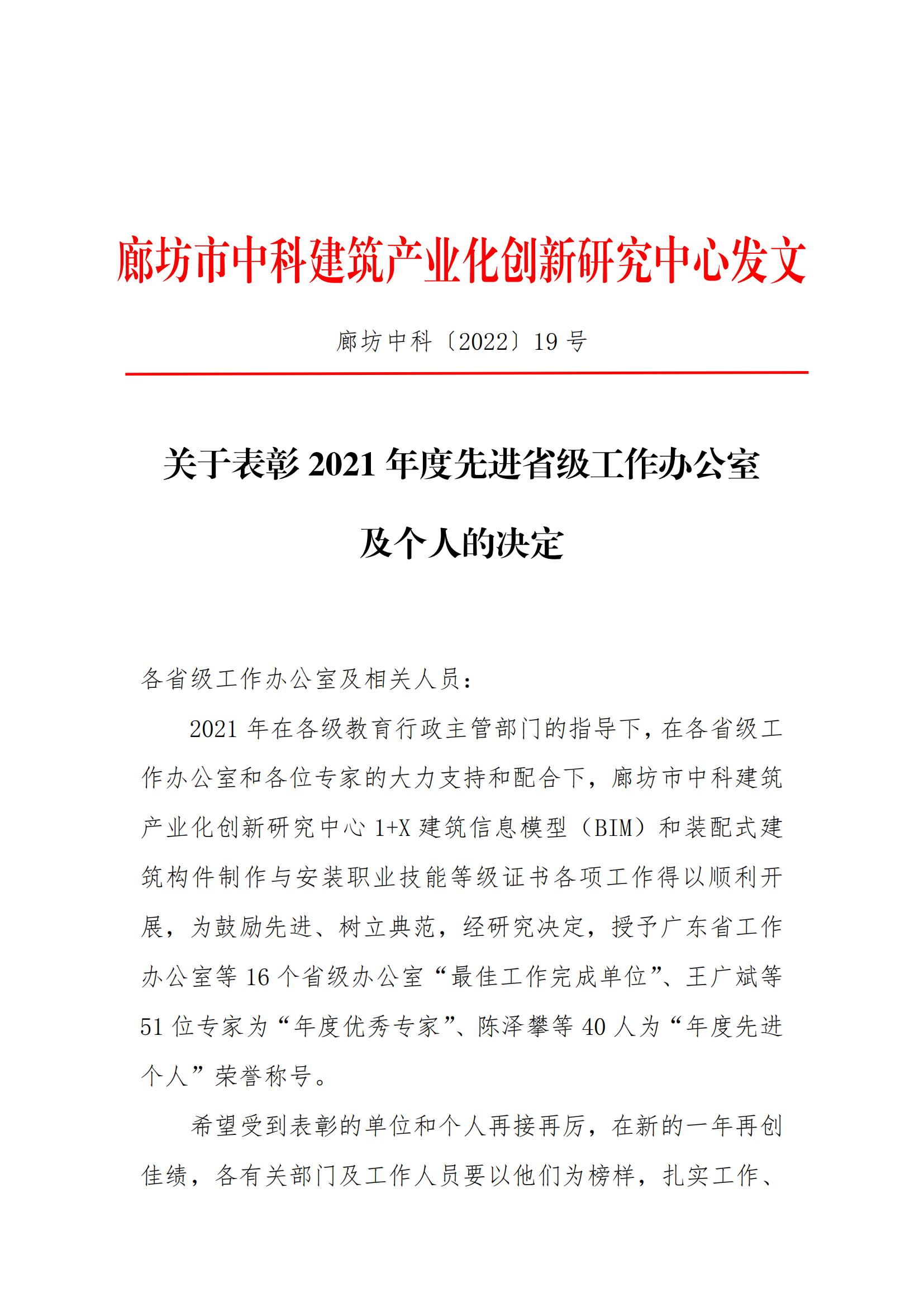 关于表彰2021年度先进省级工作办公室及个人的决定